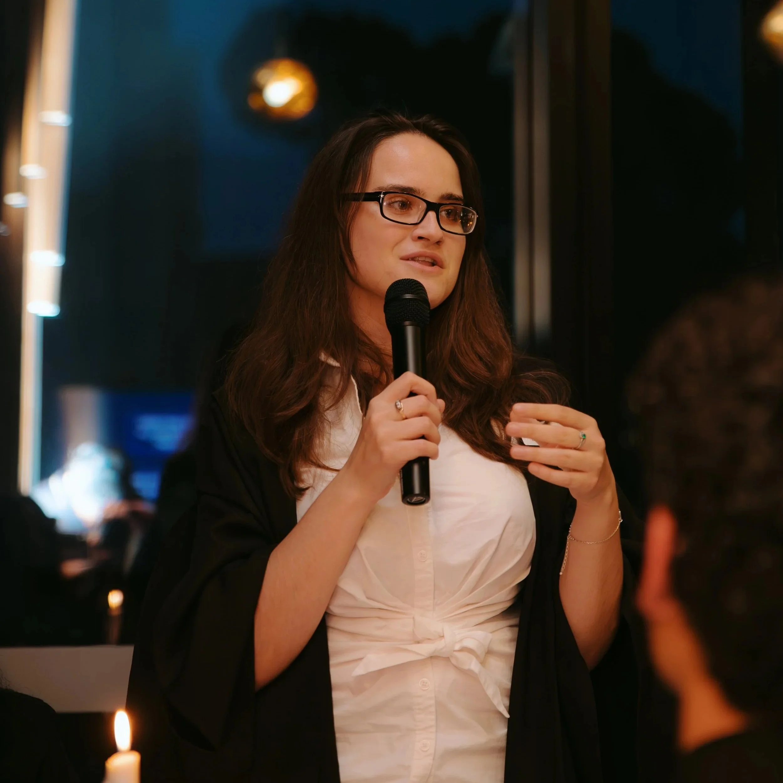 Dr Valeria Bodishtianu taking questions during at our recent Faculty & Industry Dinner on the Attention Economy.